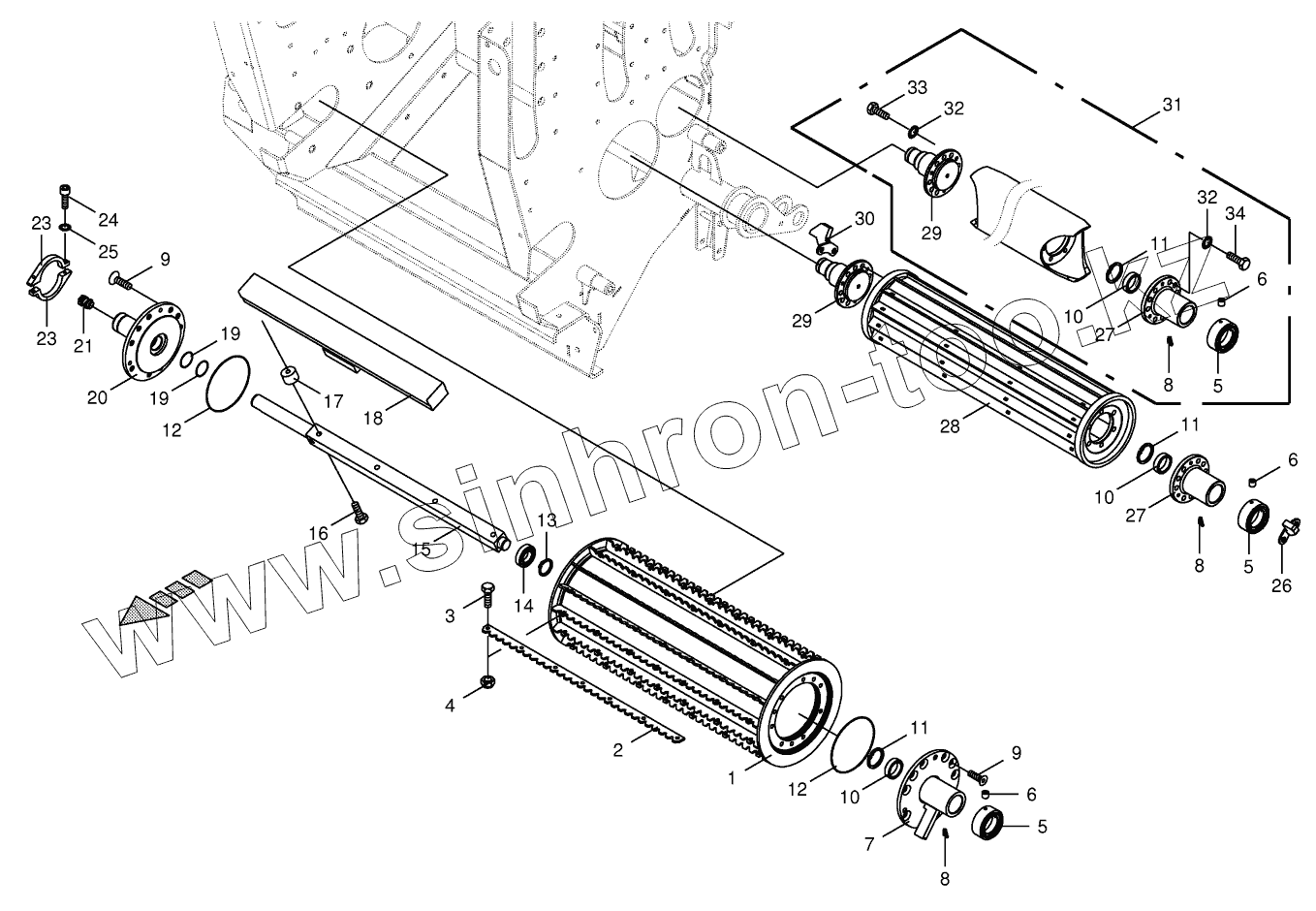 Каталог запасных частей к технике: KRONE BIG-X-700-1. Lower feed rollersс