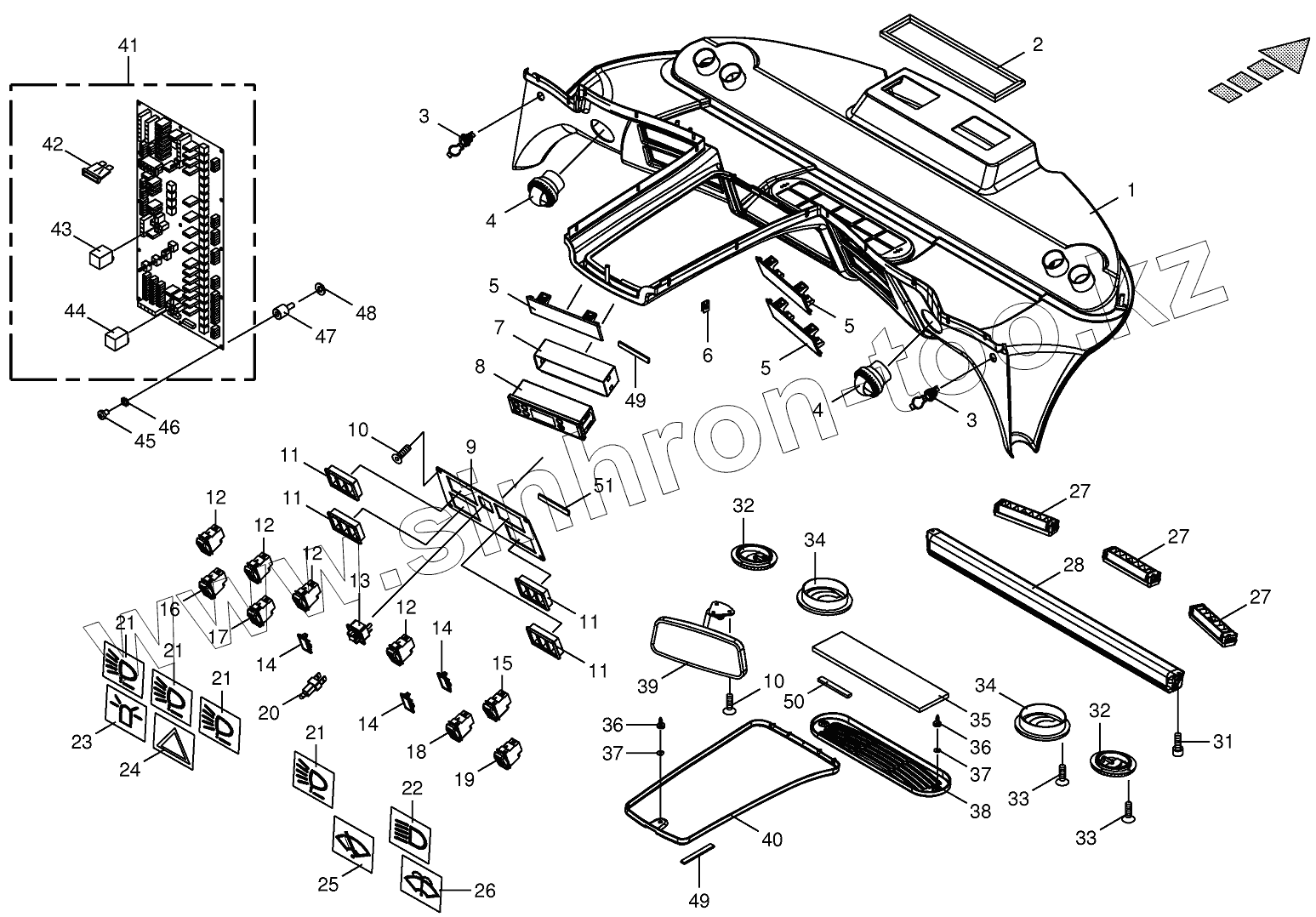 Каталог запасных частей к технике: KRONE BIG-X-700. Cab - control panel (roof)/circuit board