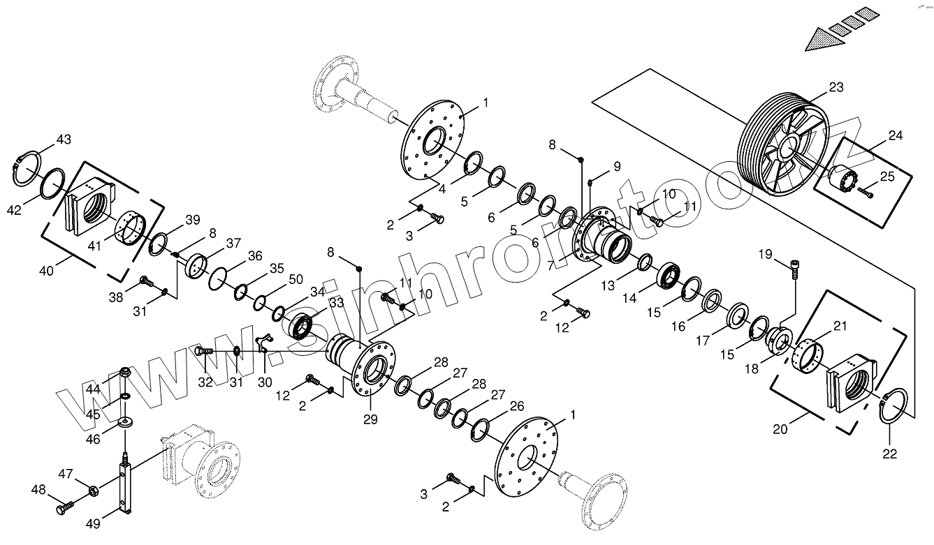 Каталог запасных частей к технике: KRONE BIG-X-700. Chopping drum bearing/counter bearing
