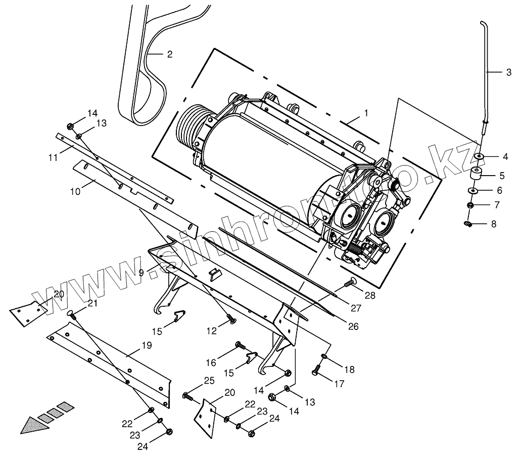 Каталог запасных частей к технике: KRONE BIG-X-700. Grain conditioner cpl./cracker duct - spring-mounted