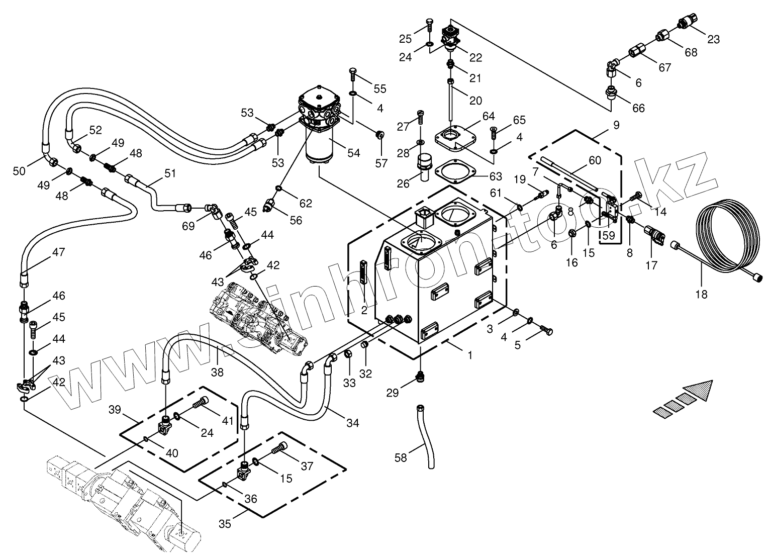 Каталог запасных частей к технике: KRONE BIG-X-700. Hydraulic tank/suction lines