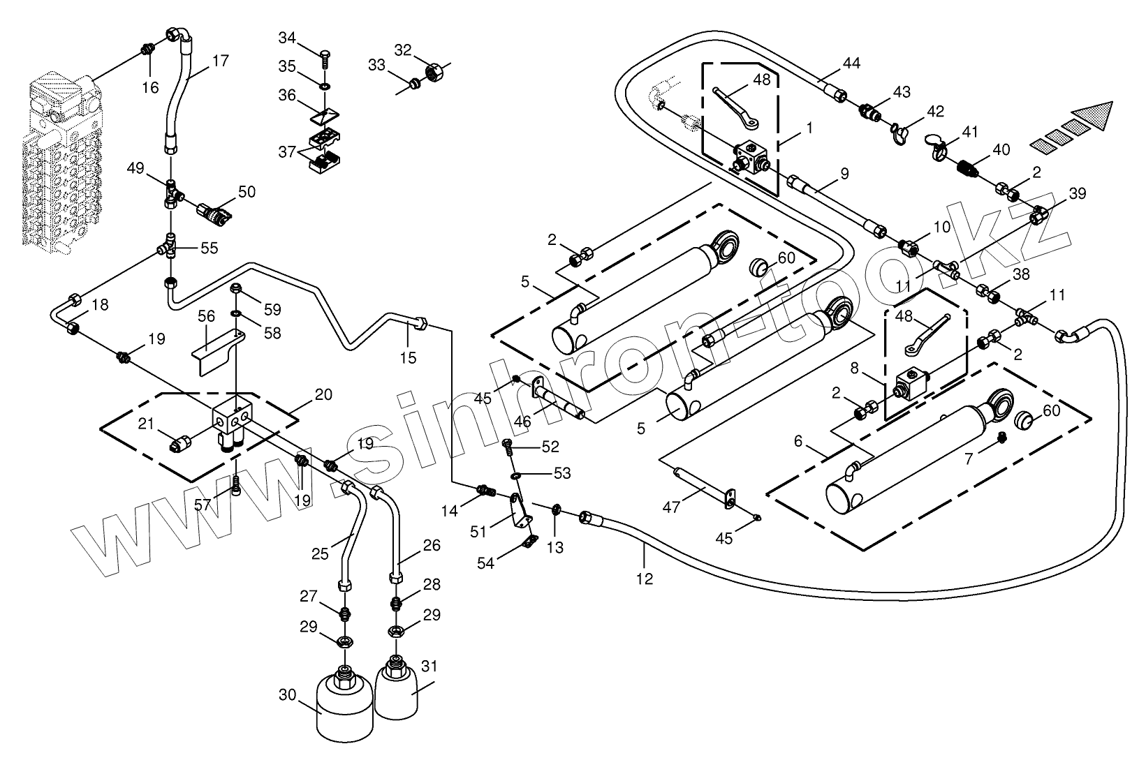 Каталог запасных частей к технике: KRONE BIG-X-700. Hydraulics - lift 12/14 row