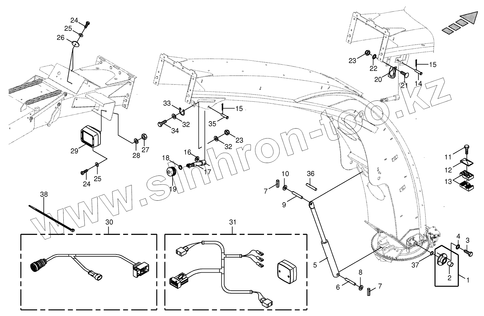Каталог запасных частей к технике: KRONE BIG-X-700. Upper discharge chute - mounting parts