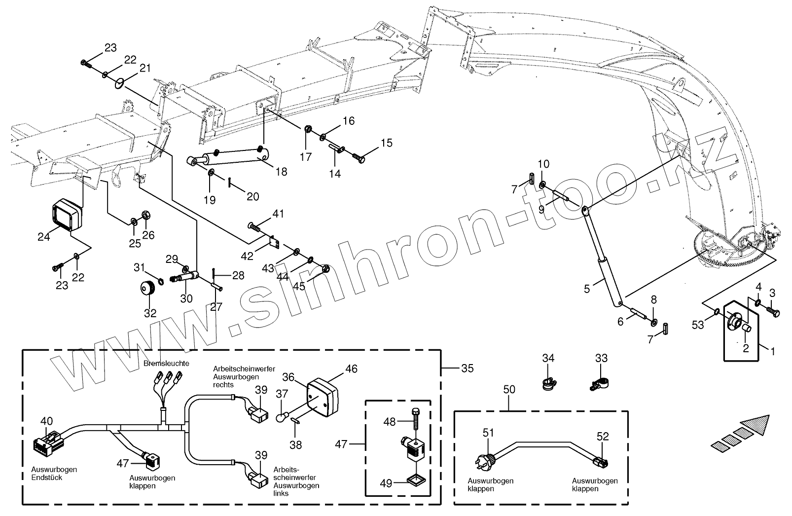 Каталог запасных частей к технике: KRONE BIG-X-700. Upper discharge chute - mounting parts 14-row