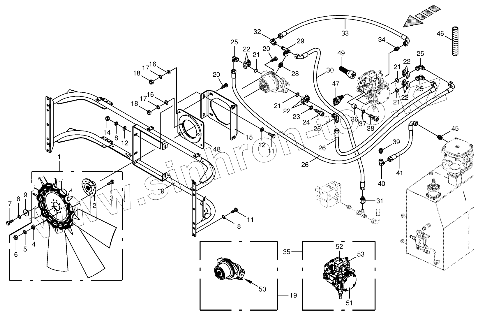 Каталог запасных частей к технике: KRONE BIG-X-700. Ventilator wheel/Drive