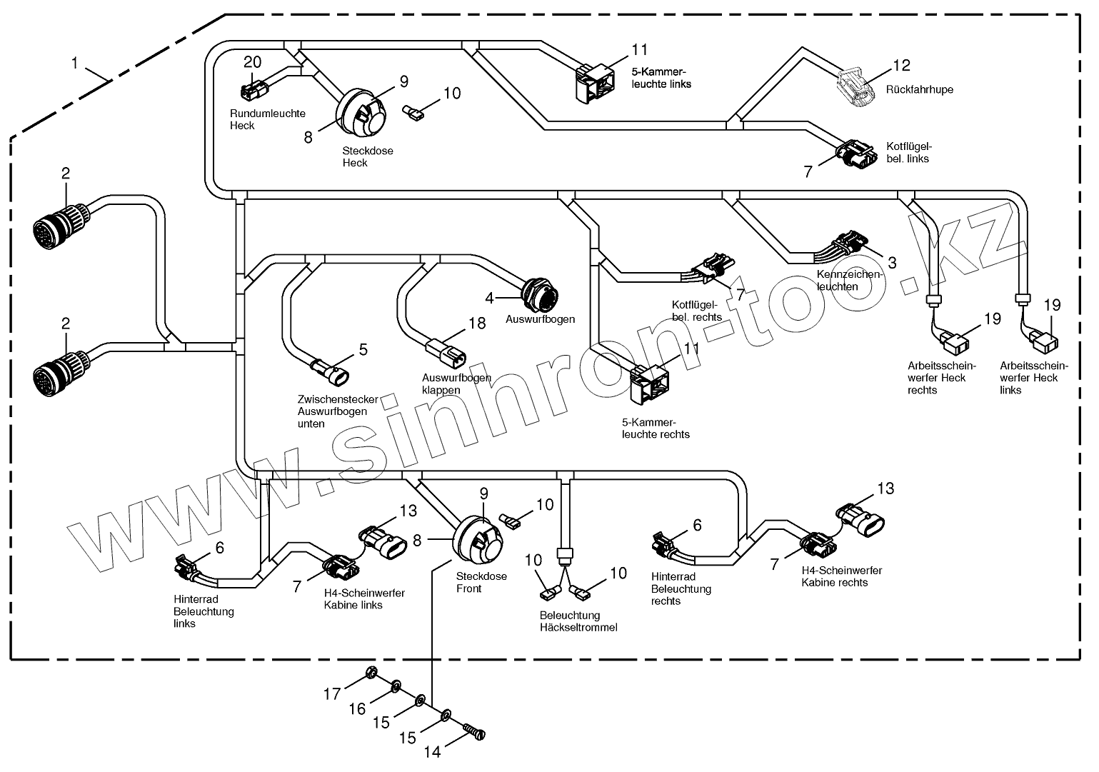 Каталог запасных частей к технике: KRONE BIG-X-700. Wiring Harness - lighting - back
