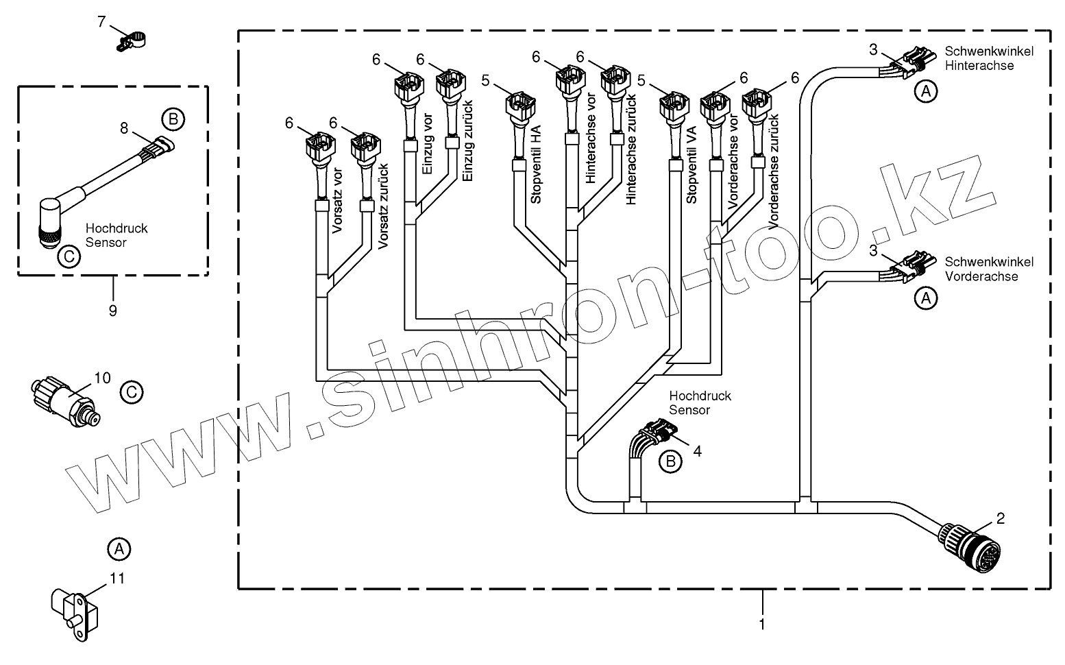 Каталог запасных частей к технике: KRONE BIG-X-700. Wiring loom - hydraulic pumps