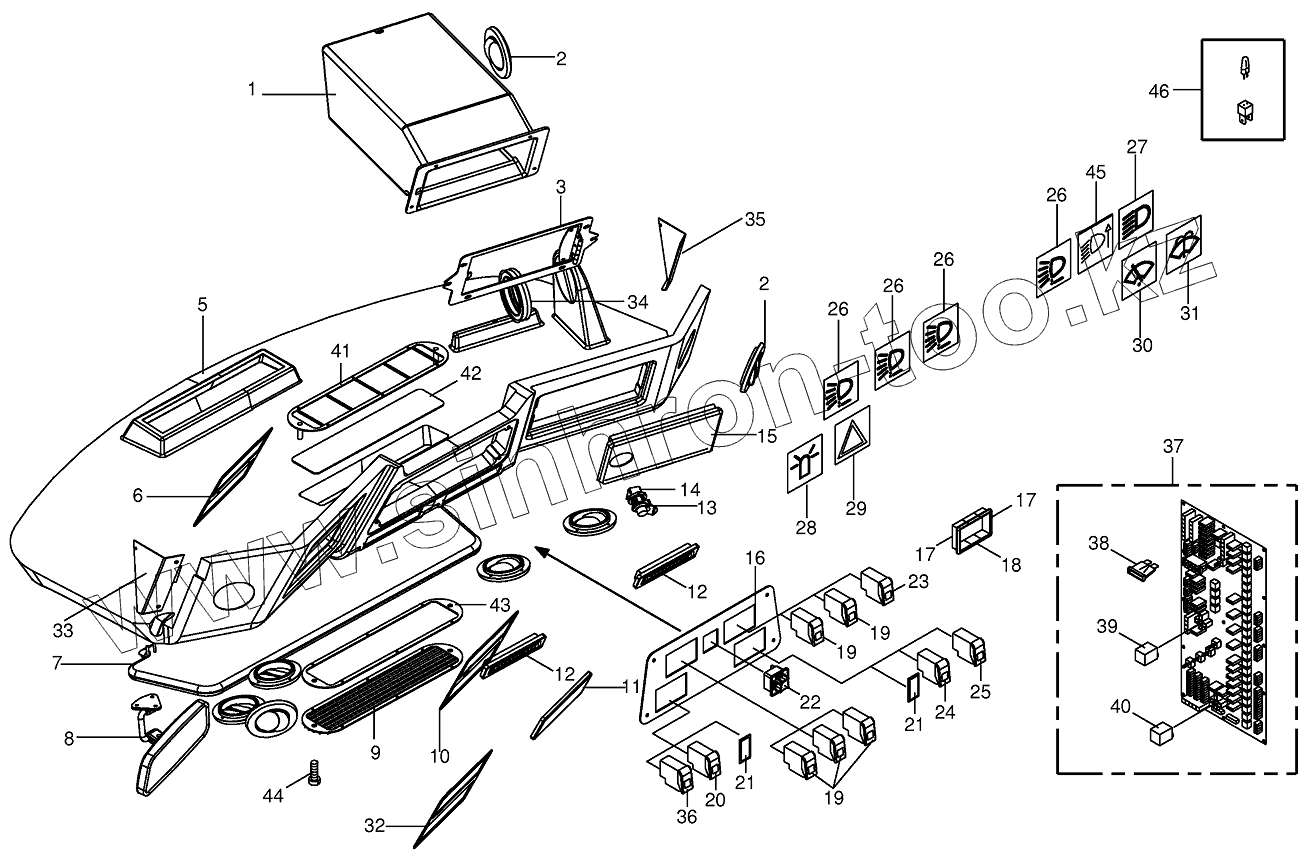 Каталог запасных частей к технике: KRONE BIG-X-700. Cab-control panel (roof)/circuit board