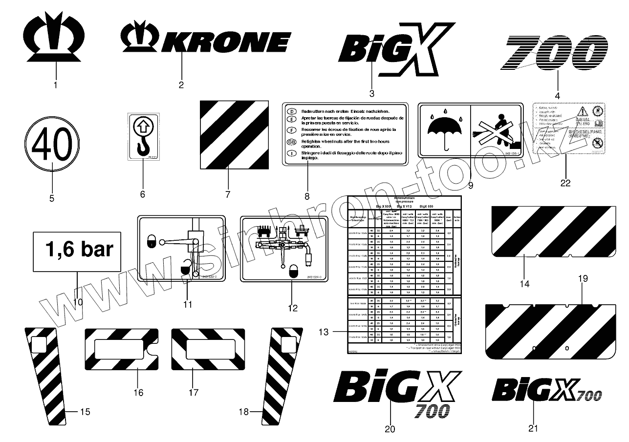 Каталог запасных частей к технике: KRONE BIG-X-700. General information labels