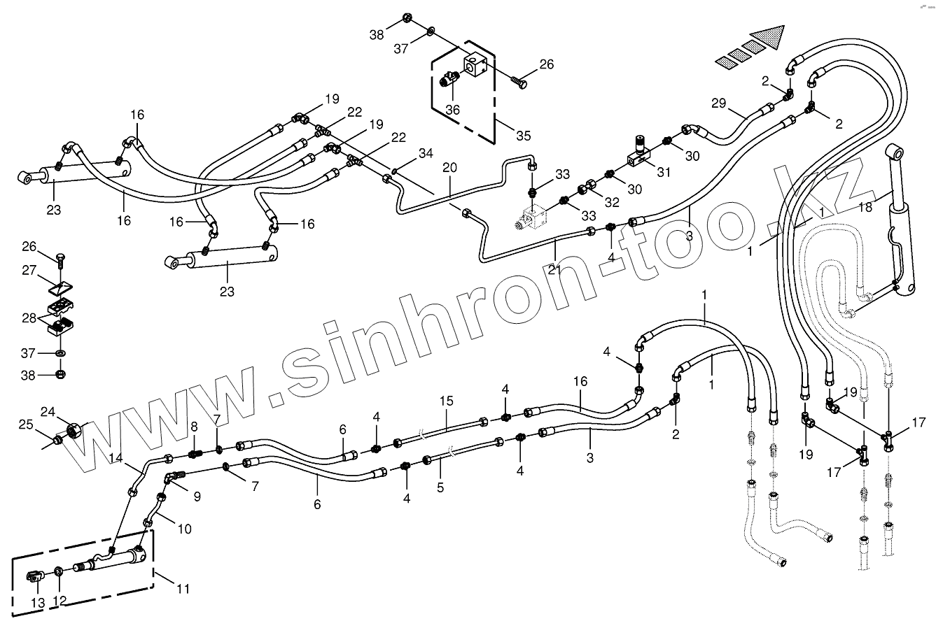 Каталог запасных частей к технике: KRONE BIG-X-700. Hydraulics-discharge chute-14-row