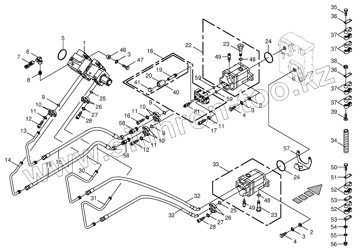 Каталог запасных частей к технике: KRONE BIG-X-700. Hydraulics-front attachment/feed rollers