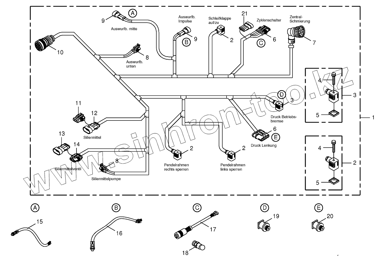 Каталог запасных частей к технике: KRONE BIG-X-700. Wiring harness-below the cabin
