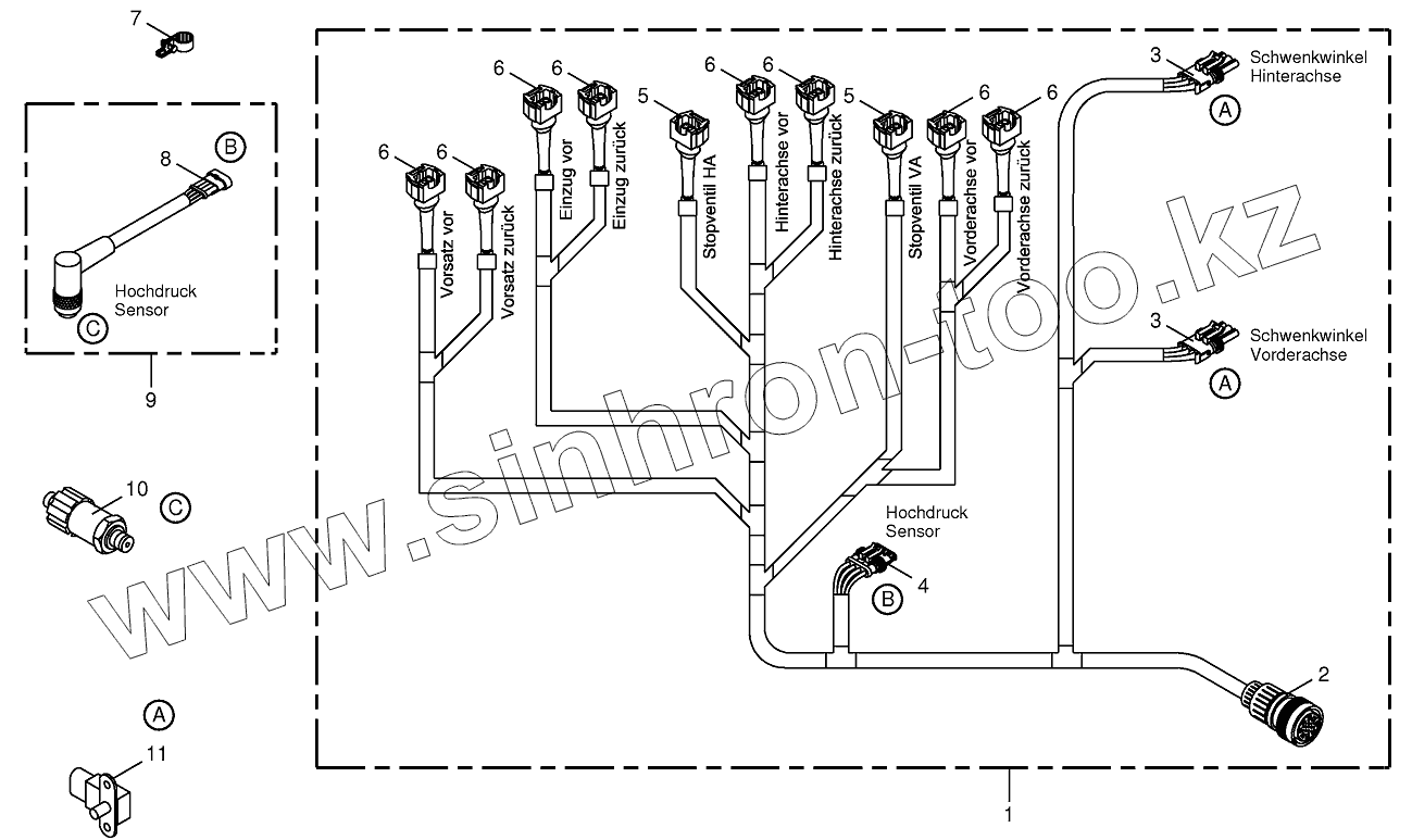 Каталог запасных частей к технике: KRONE BIG-X-700. Wiring loom-hydraulic pumps