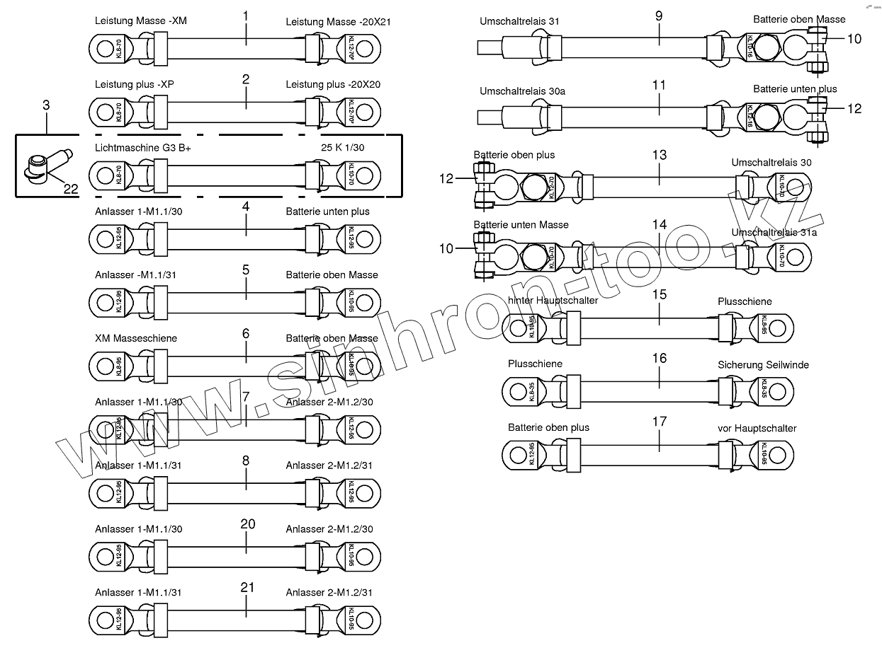 Каталог запасных частей к технике: KRONE BIG-X-800/1000. Battery and ground cable