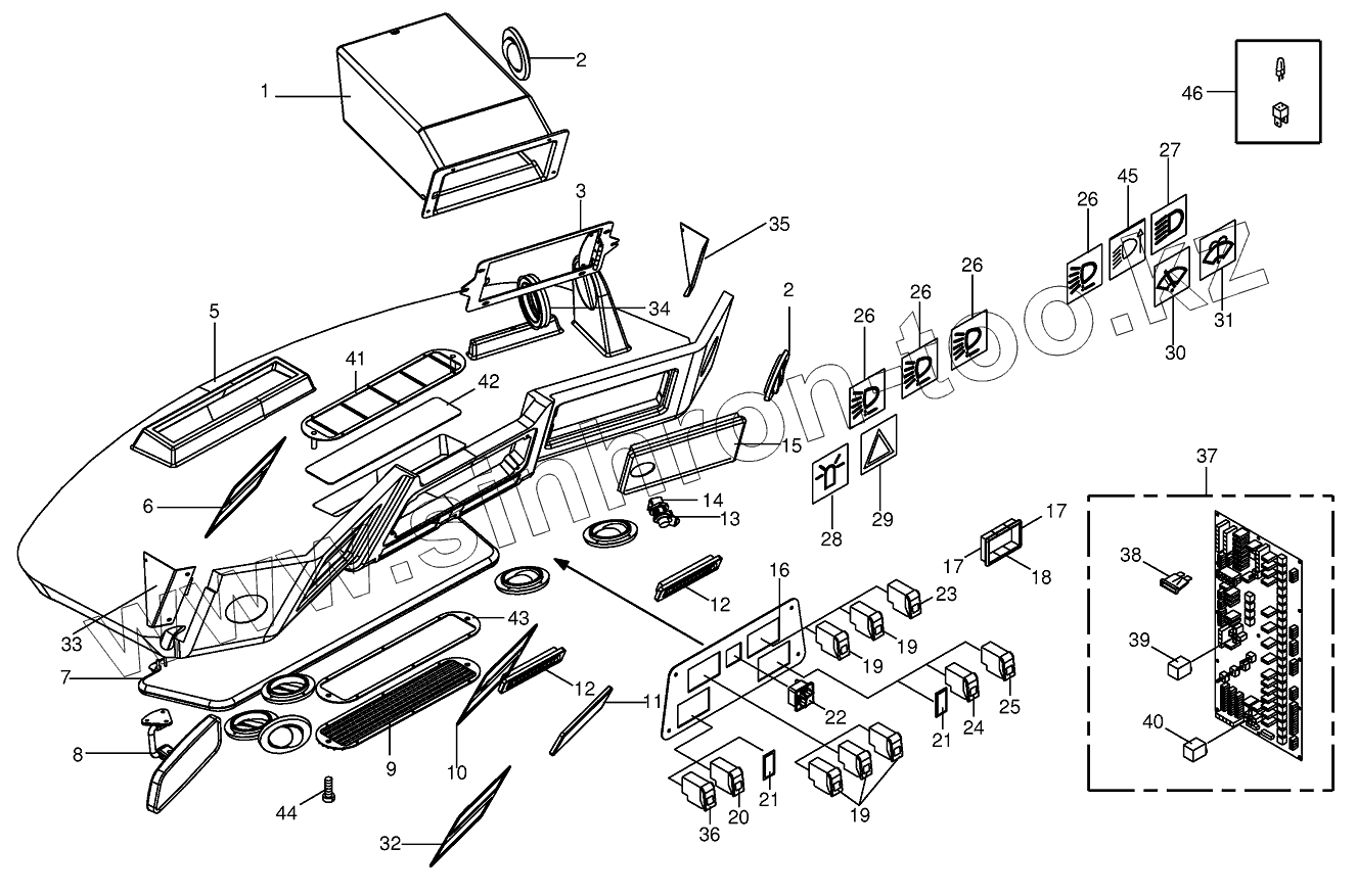 Каталог запасных частей к технике: KRONE BIG-X-800/1000. Cab-control panel (roof)/circuit board