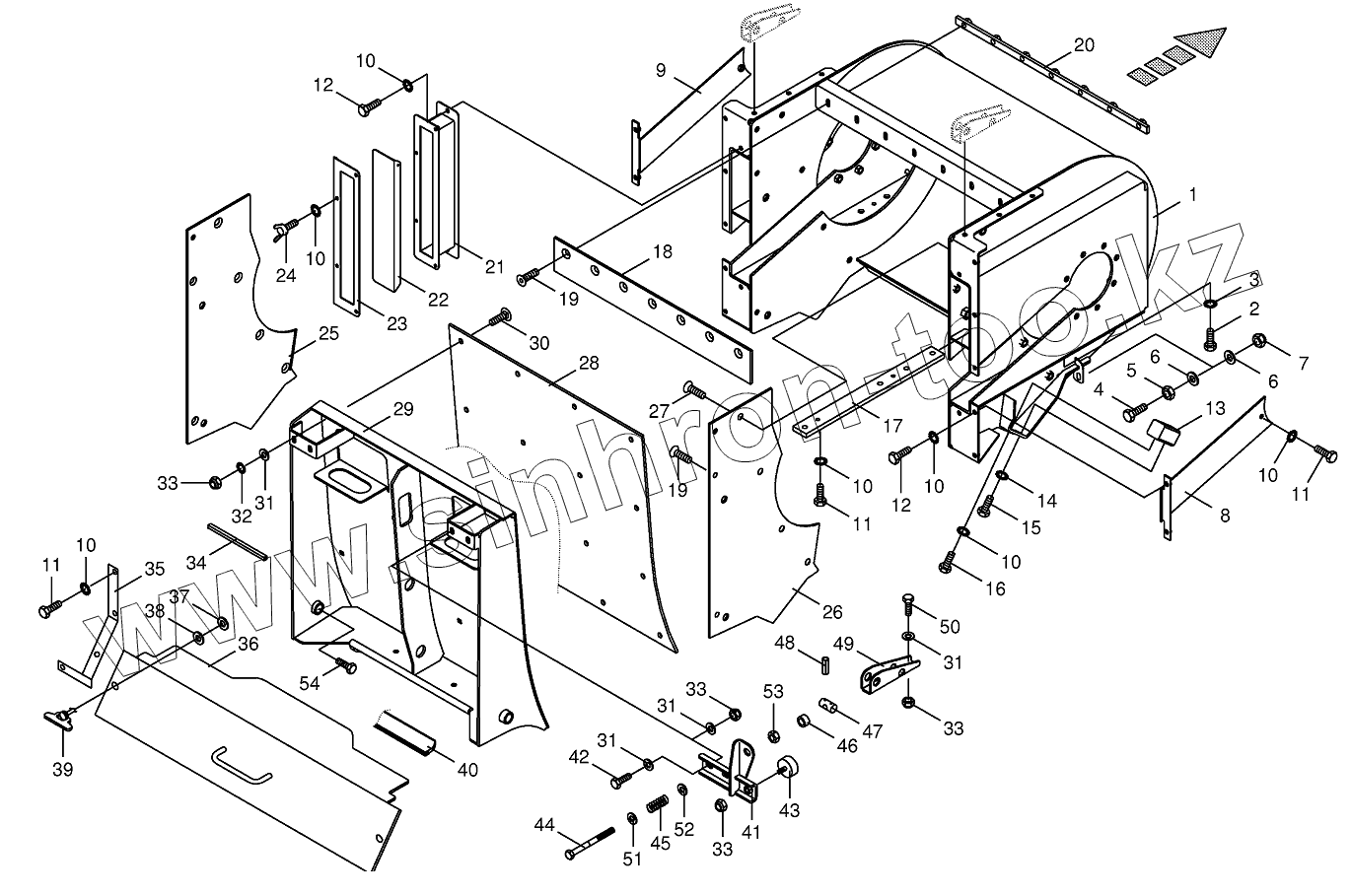 Каталог запасных частей к технике: KRONE BIG-X-800/1000. Discharge accelerator housinge-spring-mounted
