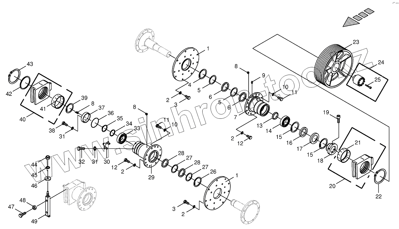 Каталог запасных частей к технике: KRONE BIG-X-800. Chopping drum bearing/counter bearing