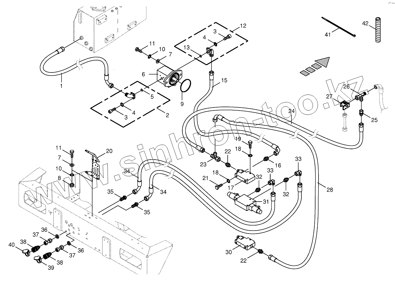 Каталог запасных частей к технике: KRONE BIG-X-800. Hydraulics-additive connection back 742612-750480