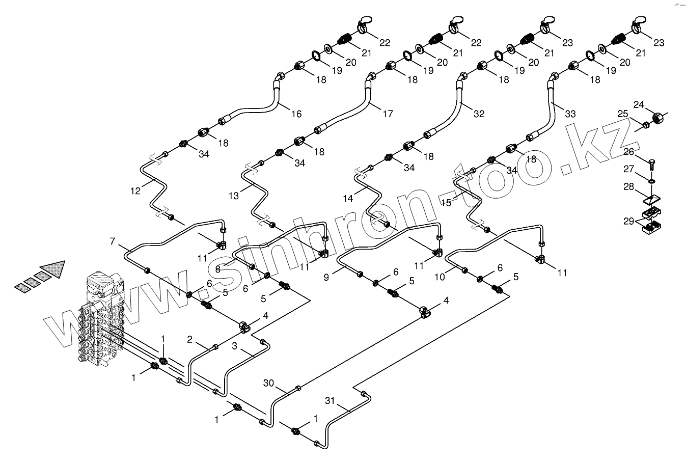 Каталог запасных частей к технике: KRONE BIG-X-800. Hydraulics-front attachment