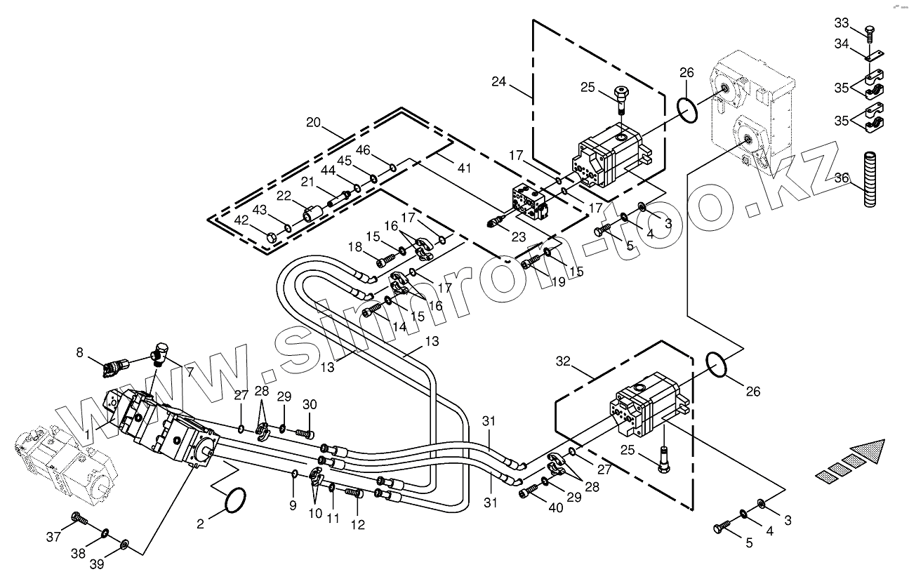 Каталог запасных частей к технике: KRONE BIG-X-800. Hydraulics-front attachment/feed rollers