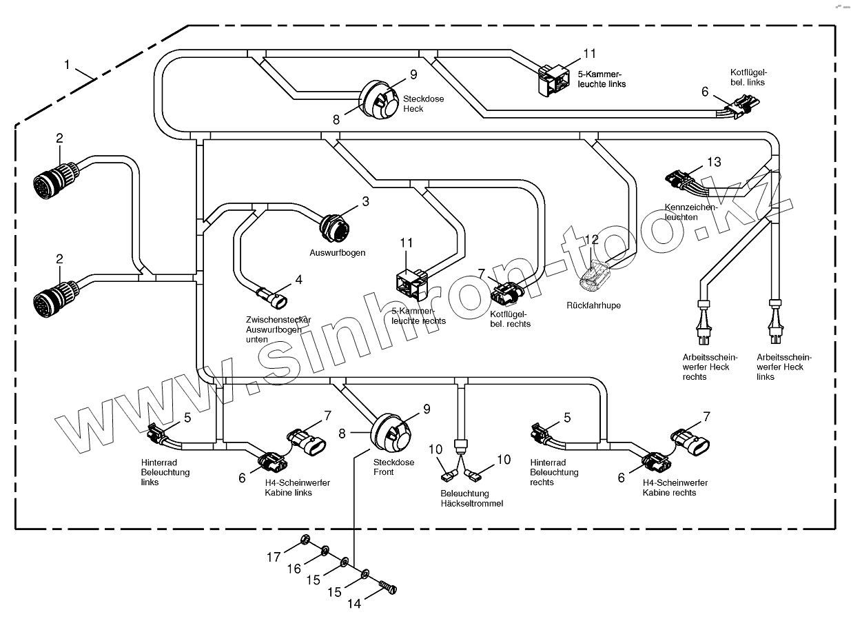 Каталог запасных частей к технике: KRONE BIG-X-800. Wiring Harness-lighting