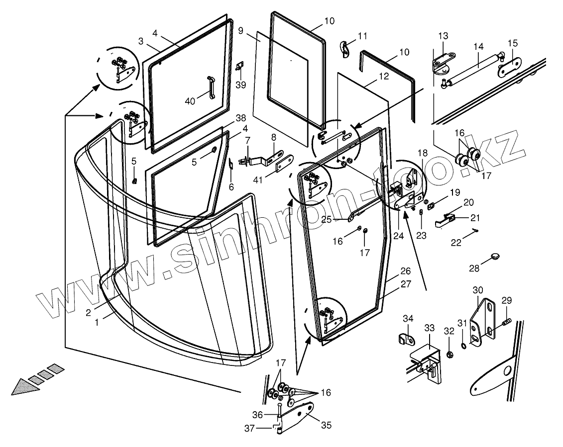 Каталог запасных частей к технике: KRONE BIG-X-800. Cab-glazing
