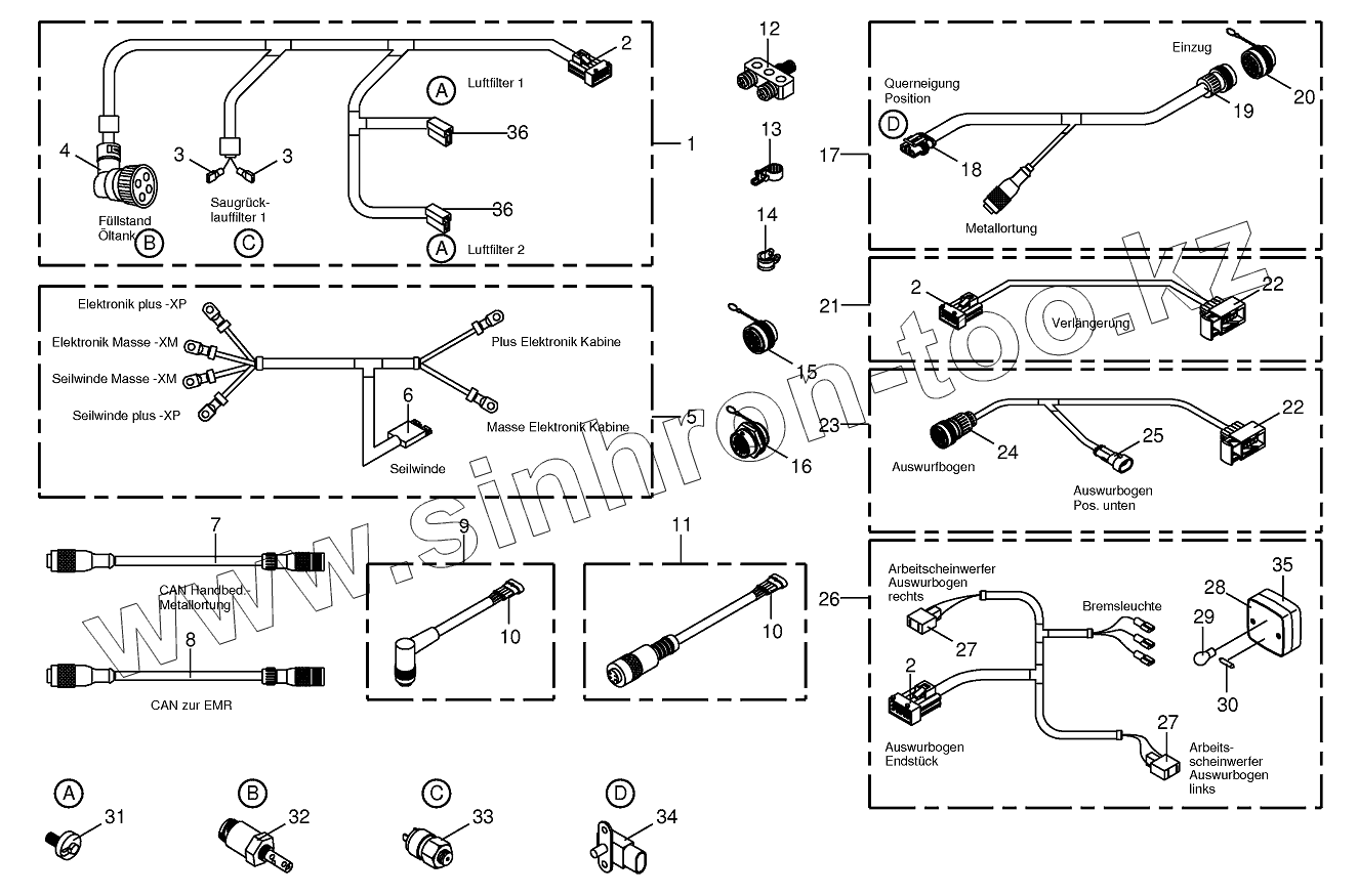 Каталог запасных частей к технике: KRONE BIG-X-800. Several wiring looms