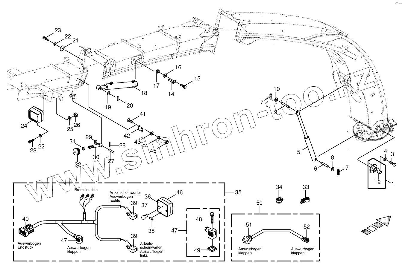 Каталог запасных частей к технике: KRONE BIG-X-800. Upper discharge chute-mounting parts 14-row