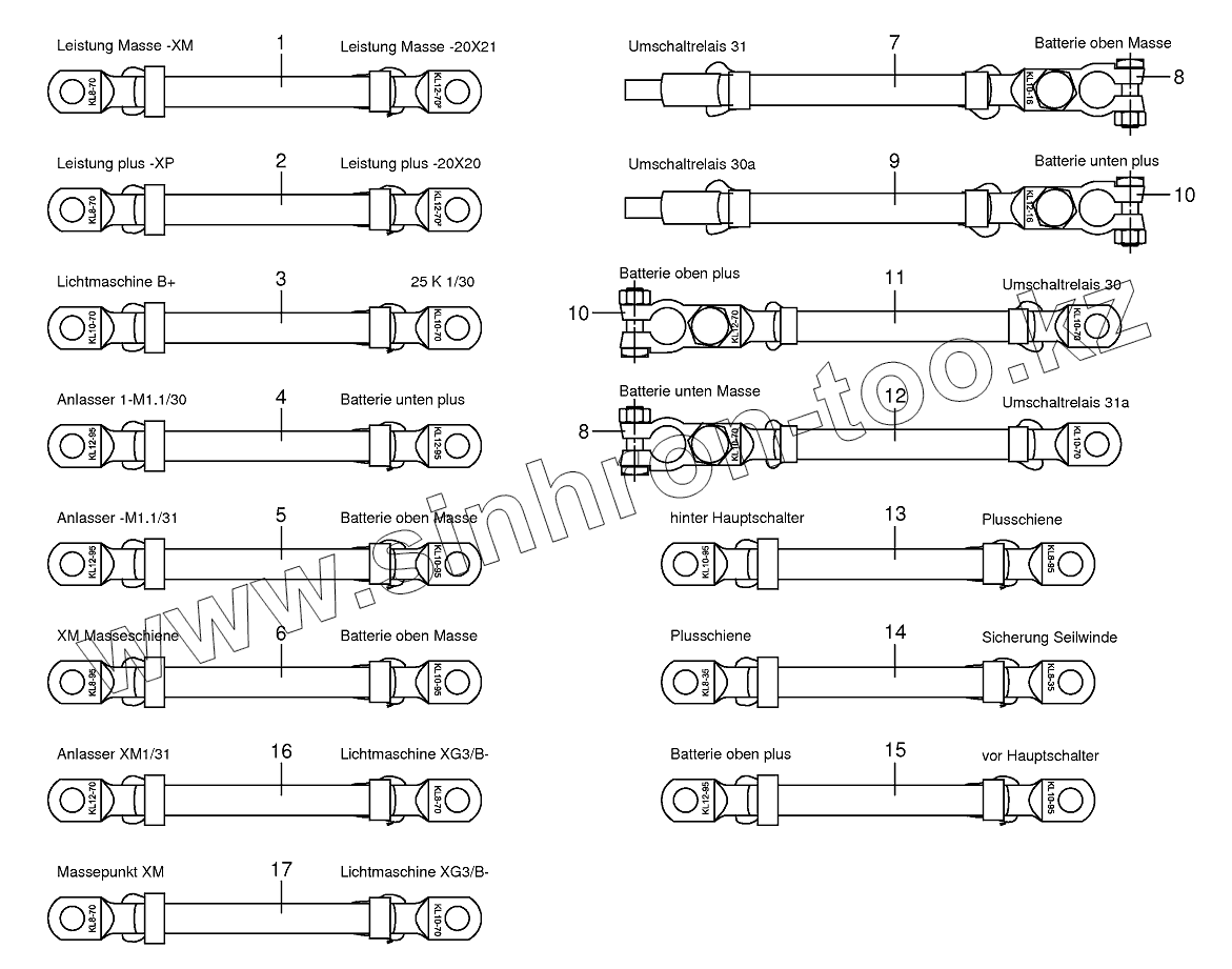Каталог запасных частей к технике: KRONE BIG-X-850/1100. Battery and ground cable