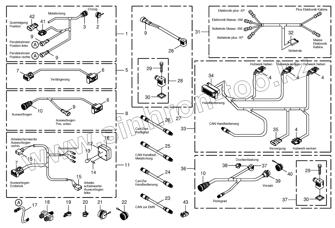 Каталог запасных частей к технике: KRONE BIG-X-850/1100. Several wiring looms