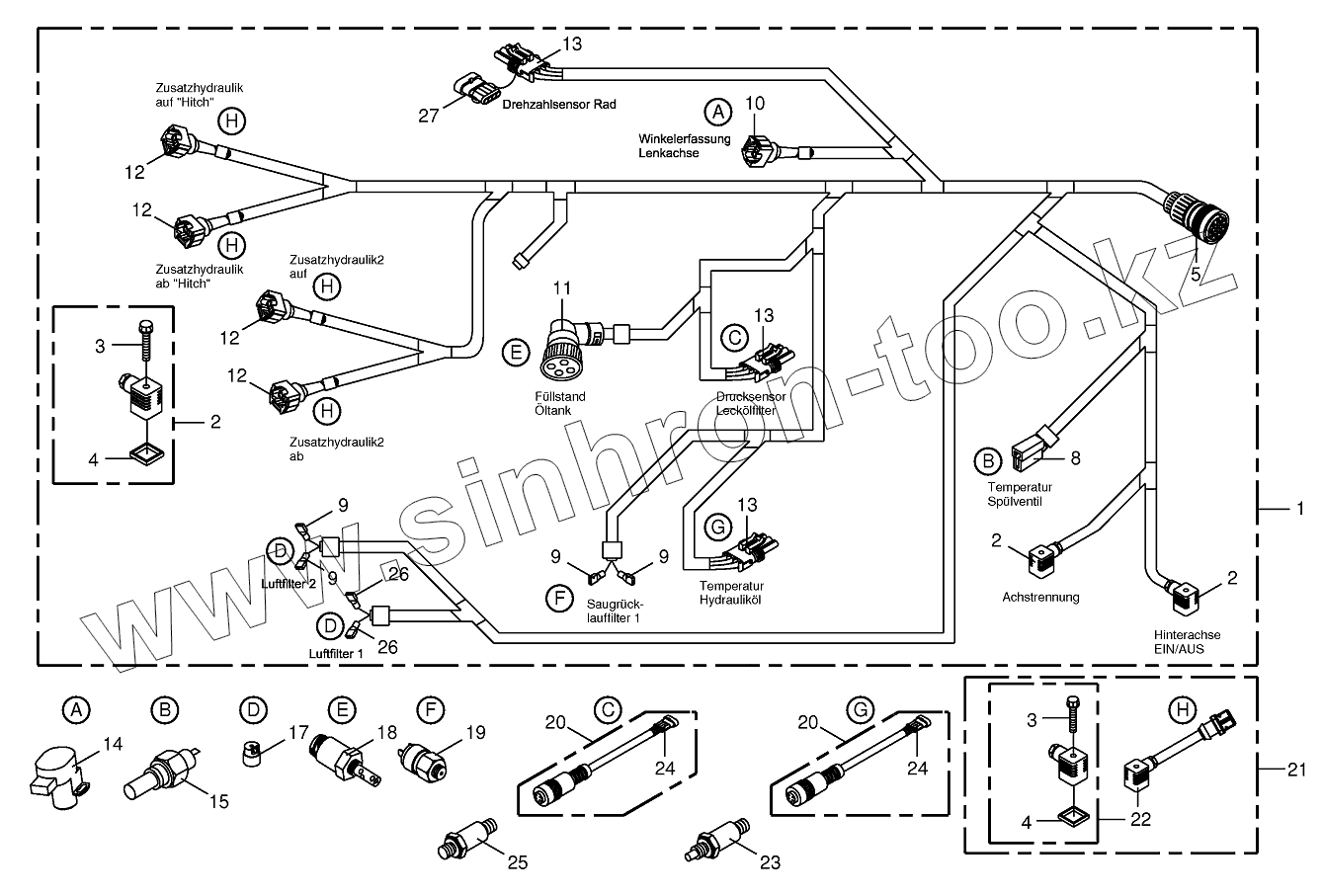 Каталог запасных частей к технике: KRONE BIG-X-850/1100. Wiring Harness-rear/drive valve