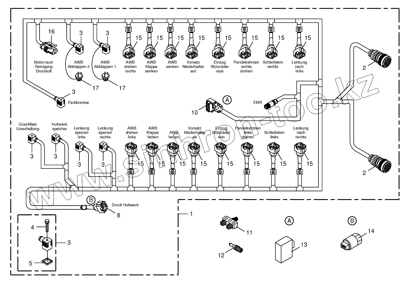Каталог запасных частей к технике: KRONE BIG-X-850/1100. Wiring Harness-valve block