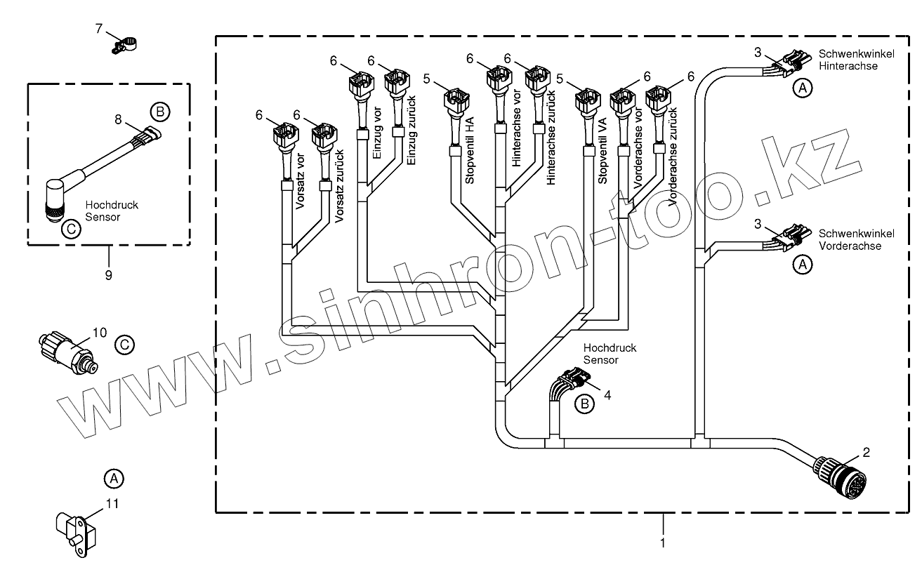 Каталог запасных частей к технике: KRONE BIG-X-850/1100. Wiring loom-hydraulic pumps