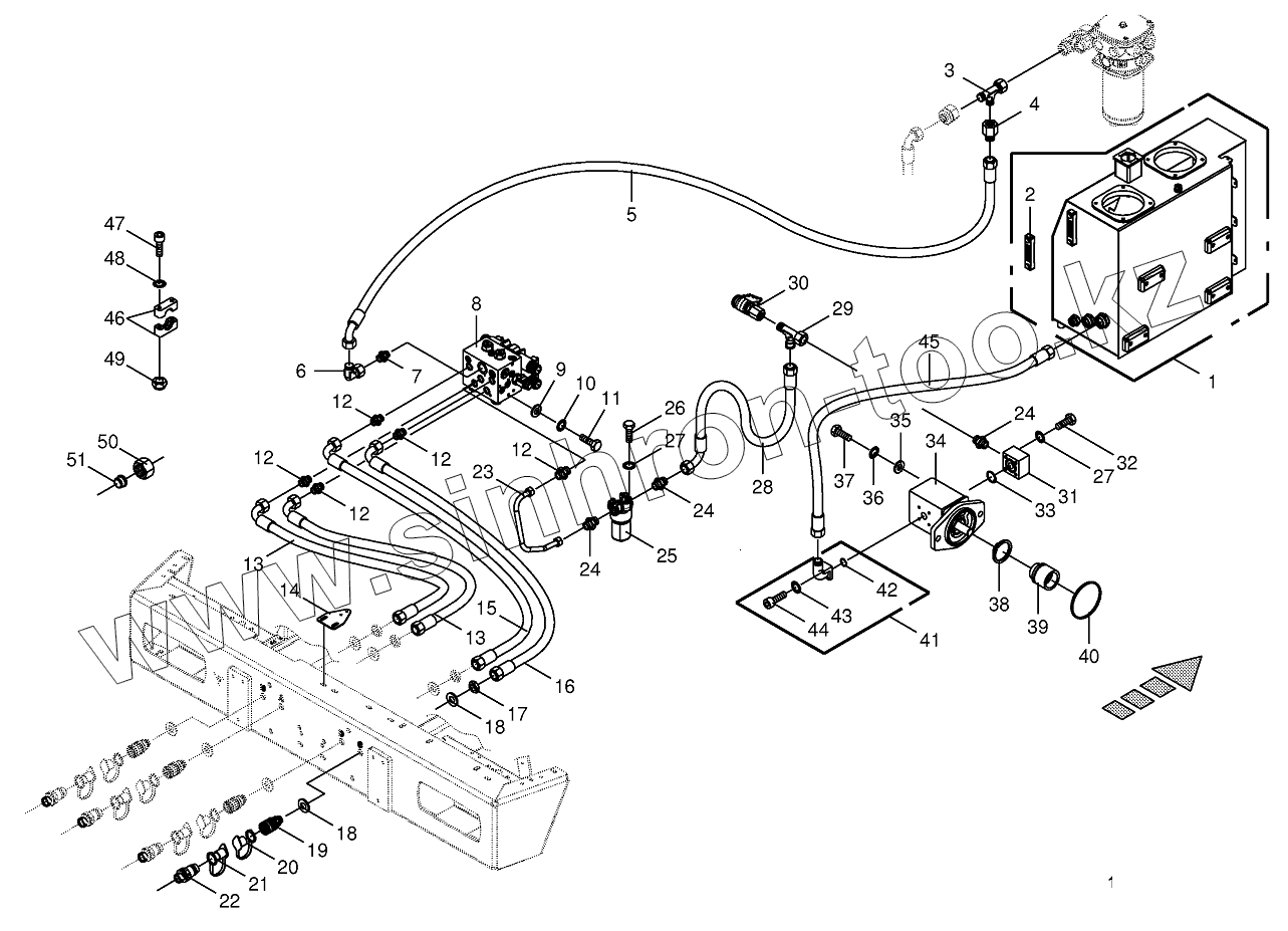 Каталог запасных частей к технике: KRONE BIG-X-850-1/1100-1. Hydraulics-additive connection back