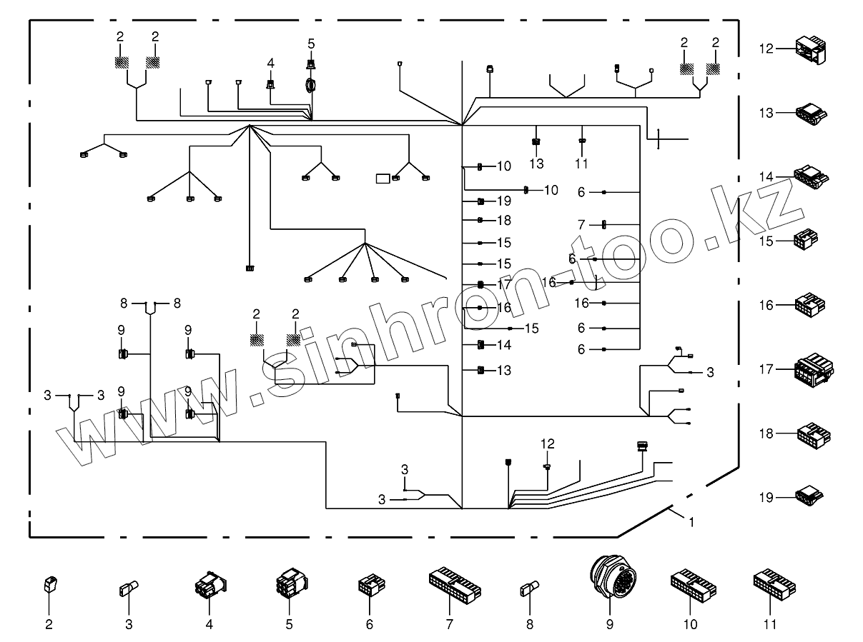 Каталог запасных частей к технике: KRONE BIG-X-850-1/1100-1. Wiring loom-cab