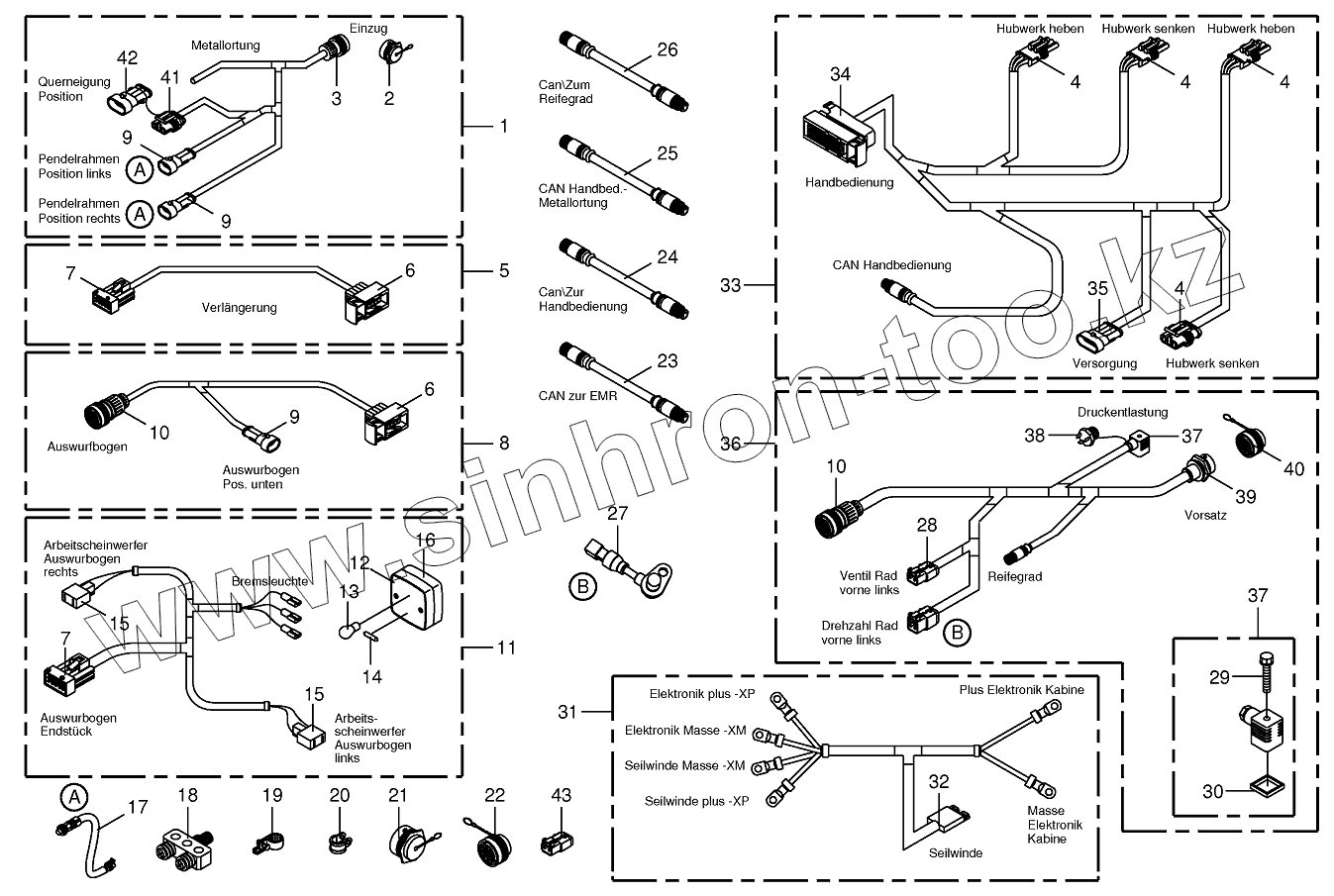 Каталог запасных частей к технике: KRONE BIG-X-850-1/1100-1. Several wiring looms