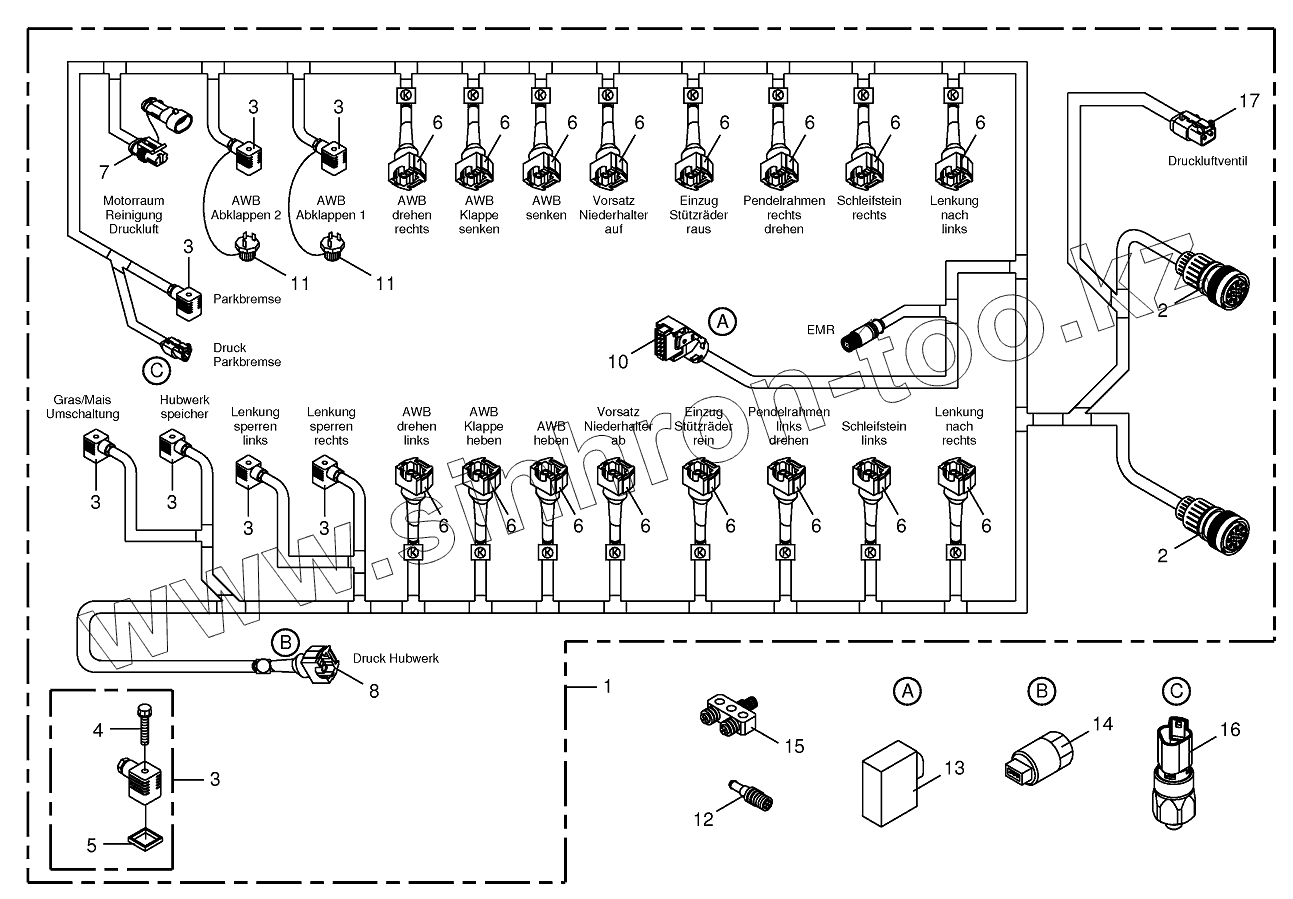 Каталог запасных частей к технике: KRONE BIG-X-850-1/1100-1. Wiring Harness-valve block