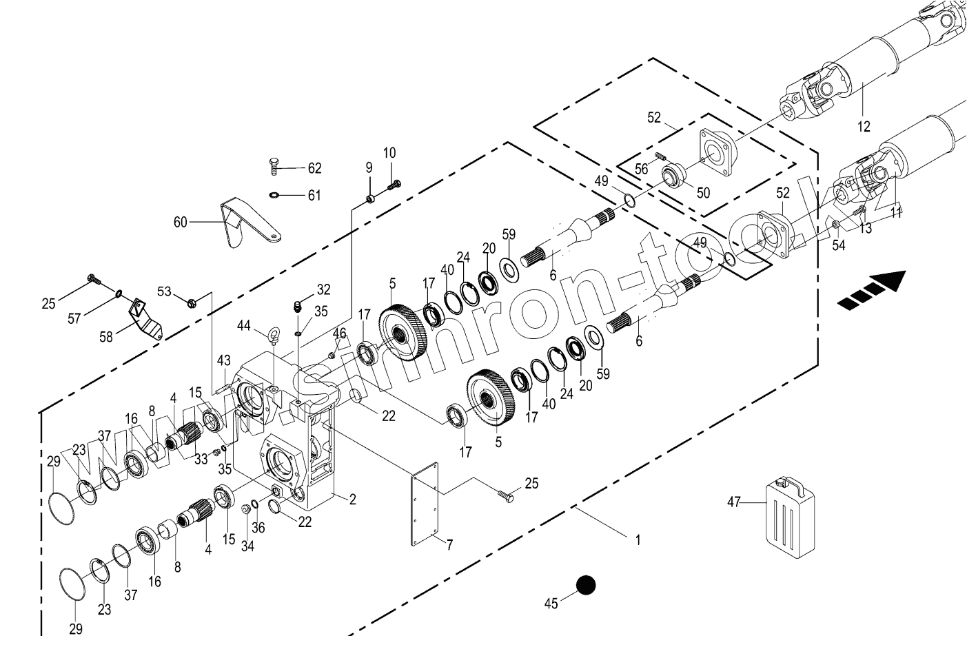 Каталог запасных частей к технике: KRONE BIG-X-850-1. Auxiliary gearbox / Drive