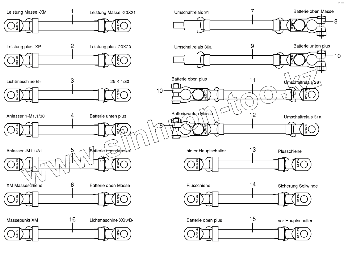 Каталог запасных частей к технике: KRONE BIG-X-850-1. Battery and ground cable