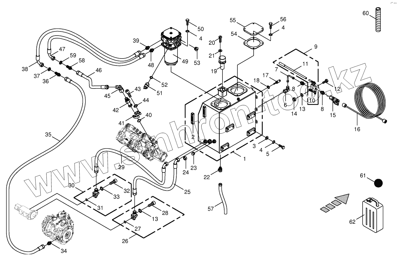 Каталог запасных частей к технике: KRONE BIG-X-850-1. Hydraulic tank / suction lines