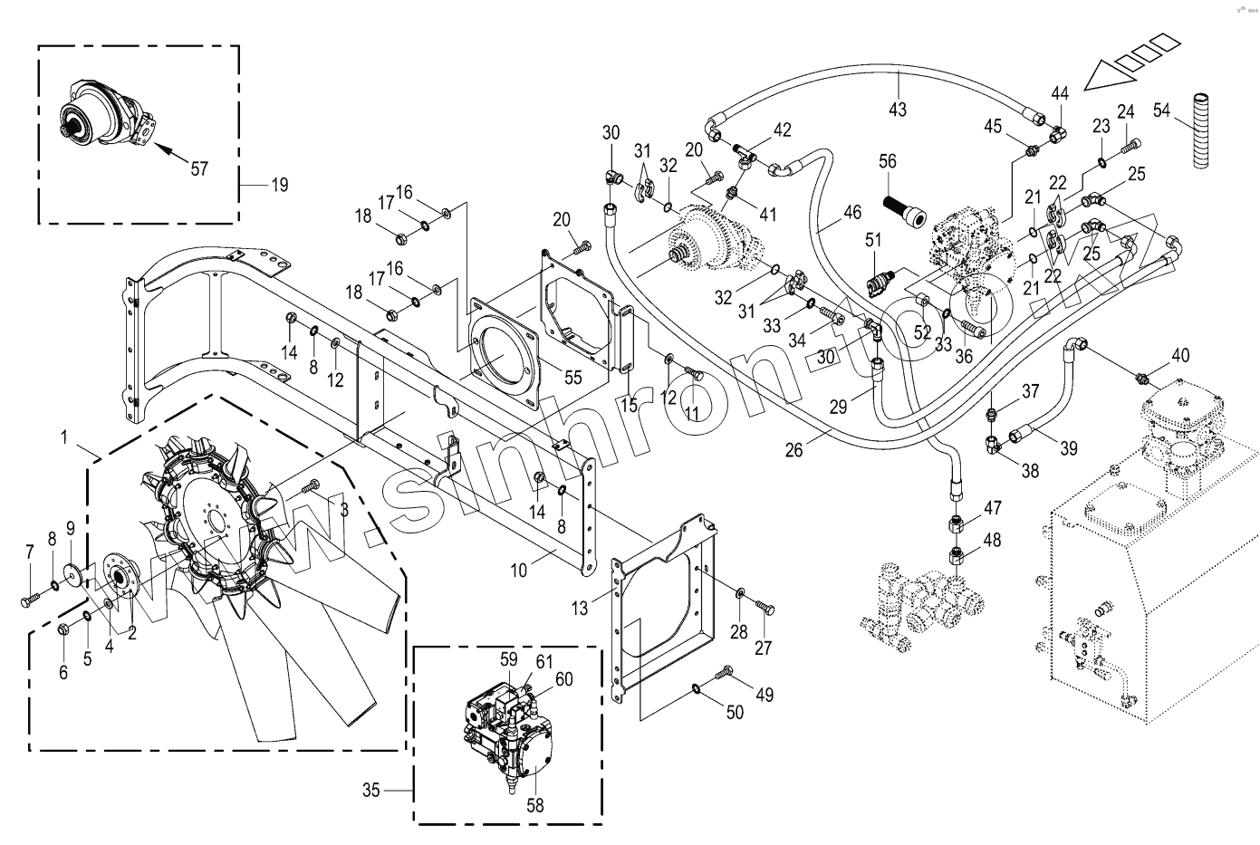 Каталог запасных частей к технике: KRONE BIG-X-850-1. Ventilator wheel / Drive