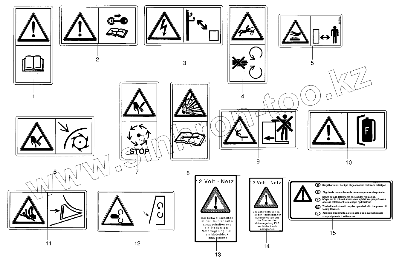 Каталог запасных частей к технике: KRONE BiG X V8, BiG X V12. Warning signs