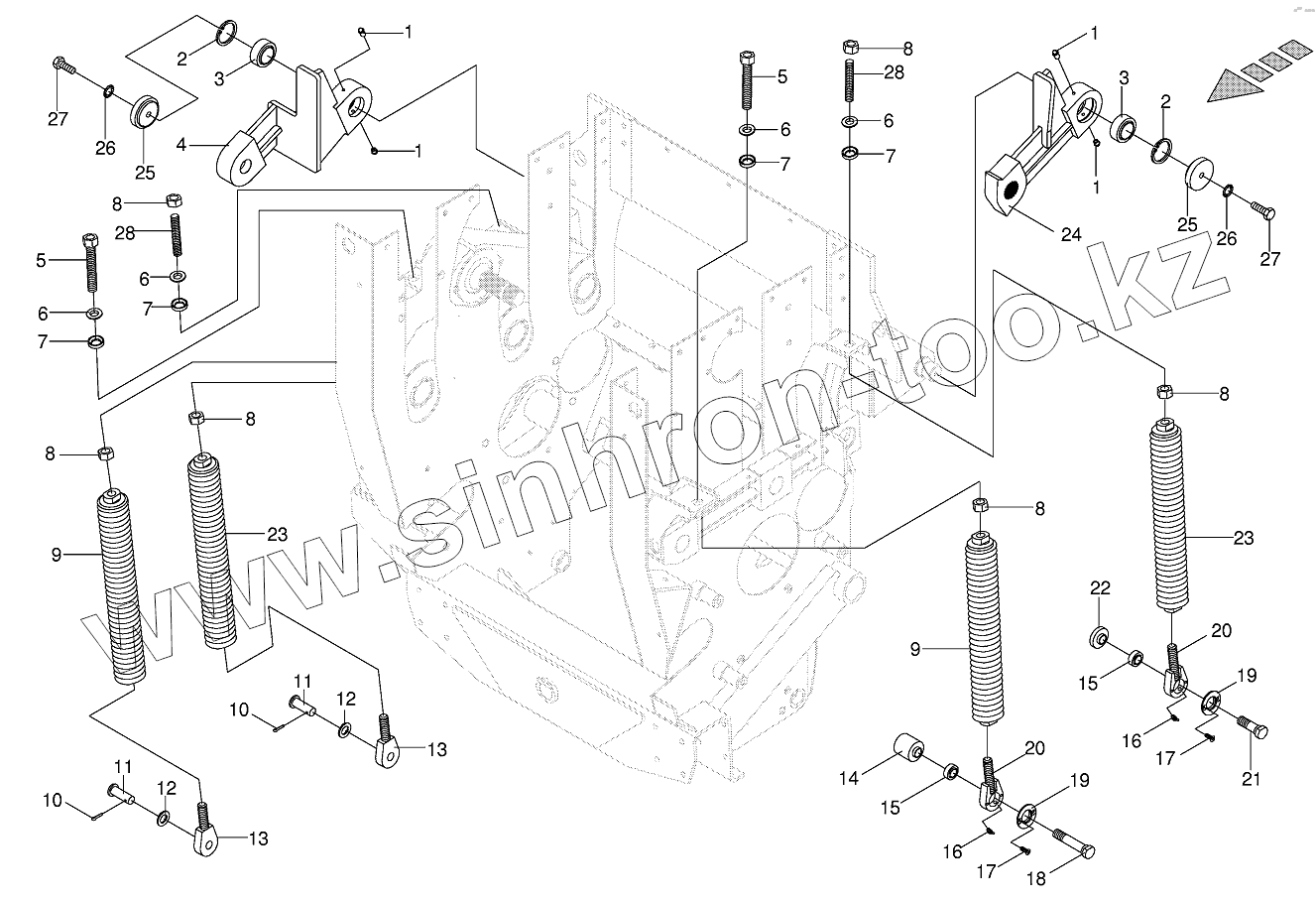 Каталог запасных частей к технике: KRONE BIG-X-V8/BIG-X-V12. Oscillating levers/Tension spring