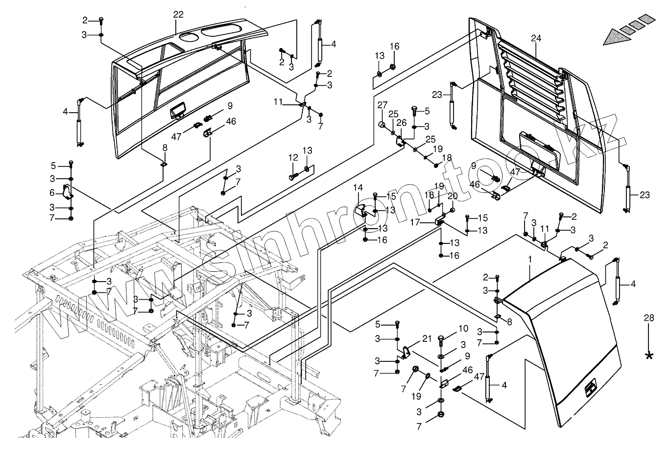Каталог запасных частей к технике: KRONE BIG-X-V8/BIG-X-V12. Plastic panelling engine compartment