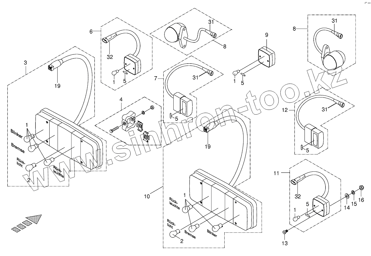 Каталог запасных частей к технике: KRONE BIG-X-V8/BIG-X-V12. Backing-up lights