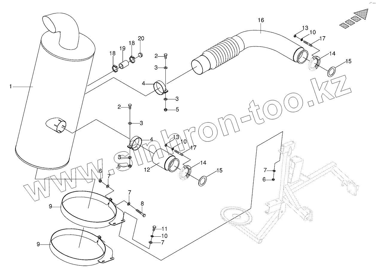 Каталог запасных частей к технике: KRONE BIG-X-V8/BIG-X-V12. Silencer OM444 (V12)
