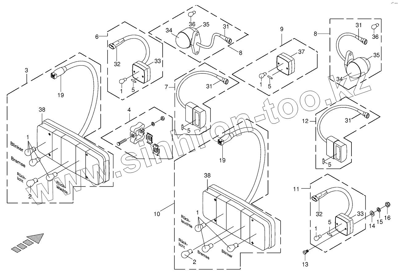 Каталог запасных частей к технике: KRONE BIG-X-V8/BIG-X-V12. Backing-up lights