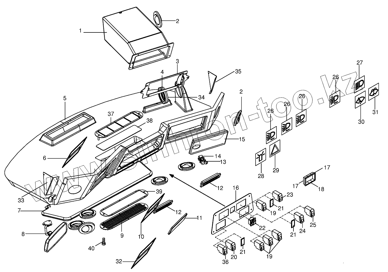 Каталог запасных частей к технике: KRONE BIG-X-V8/BIG-X-V12. Control panel (roof)