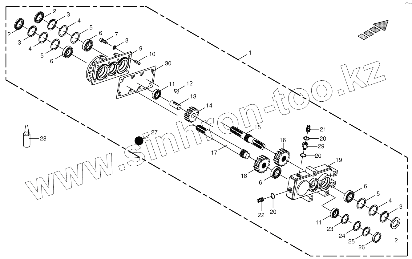 Каталог запасных частей к технике: KRONE Easycollect. Gearbox inside - Addition JD / NH