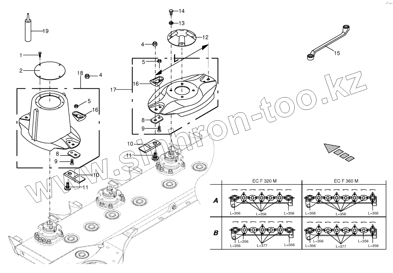 Каталог запасных частей к технике: KRONE EasyCut F360M. Blade fastening